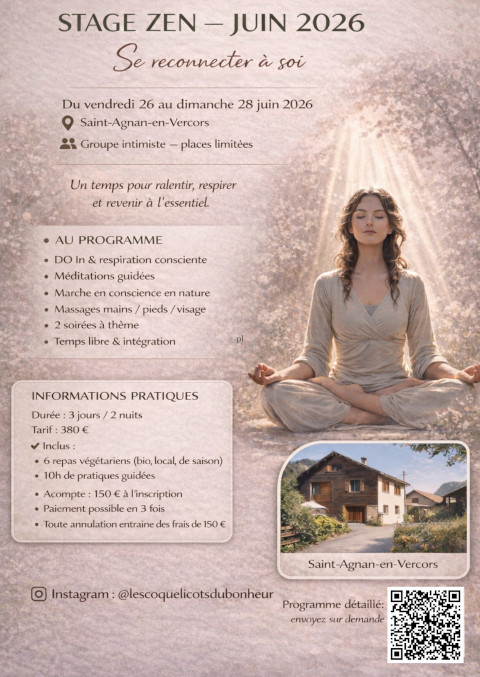 Ce stage est une parenthèse de 3 jours en pleine nature, un espace pour se déposer, se reconnecter à son corps et revenir à l’essentiel. Une approche simple, sensible et guidée. Juste un temps pour soi.